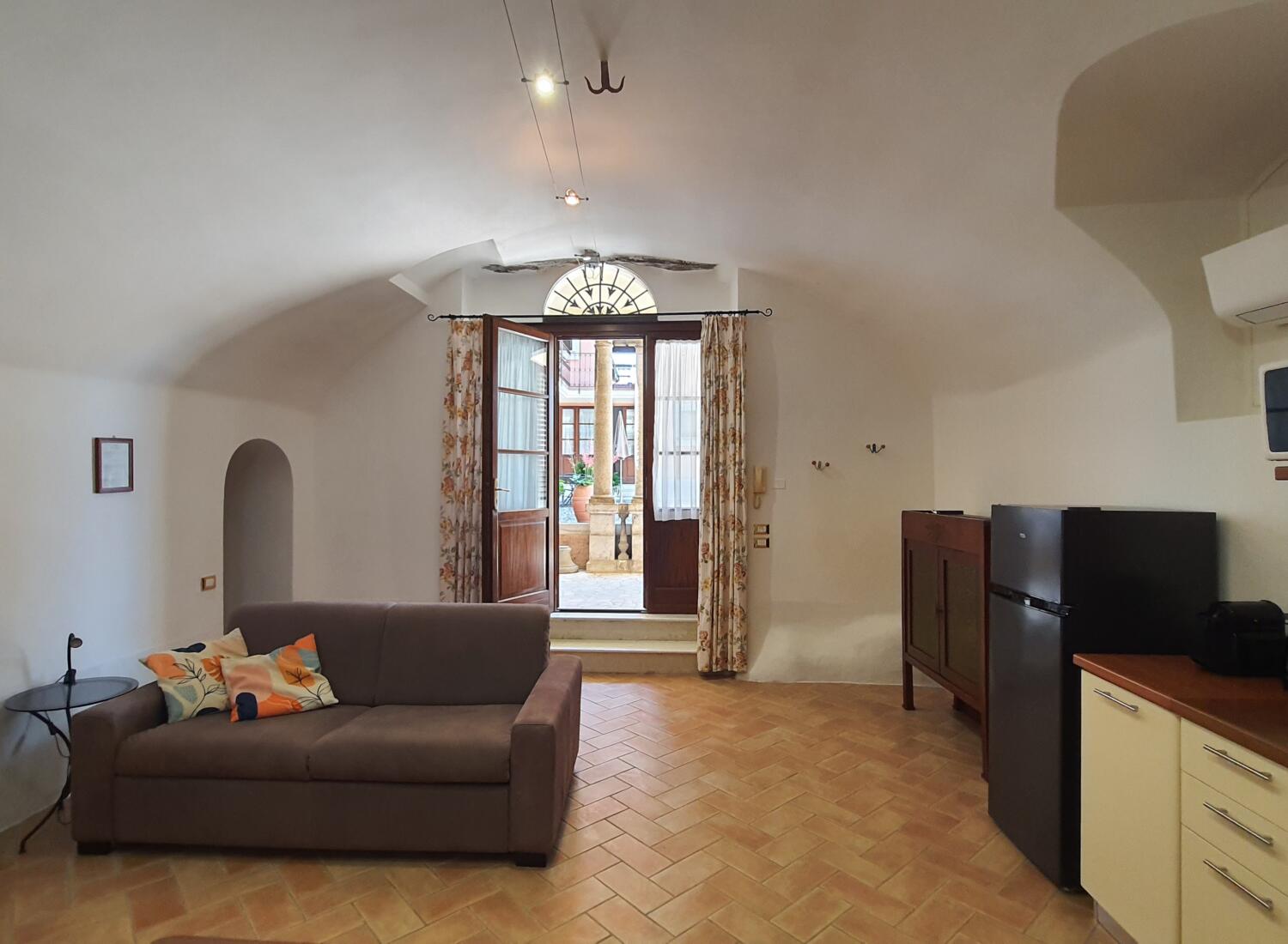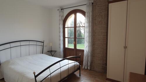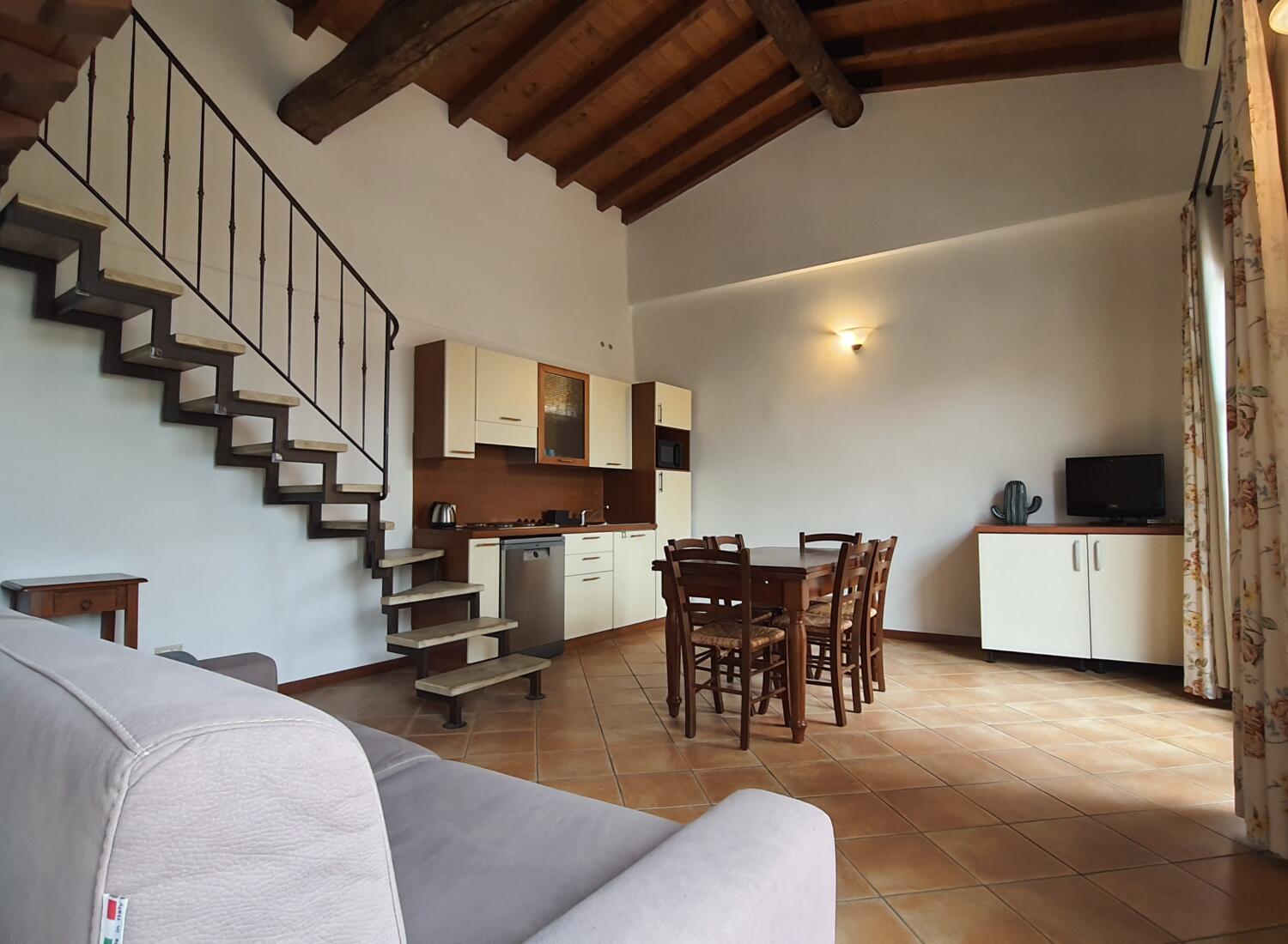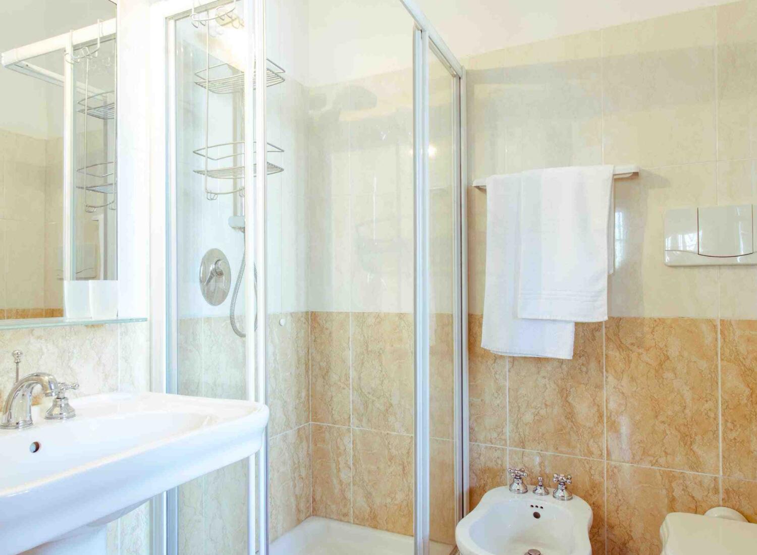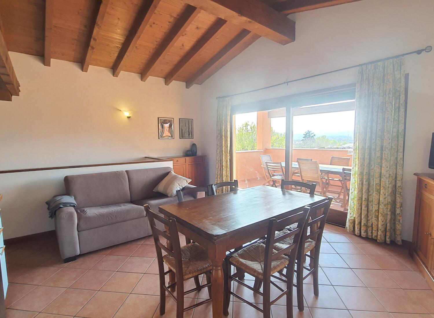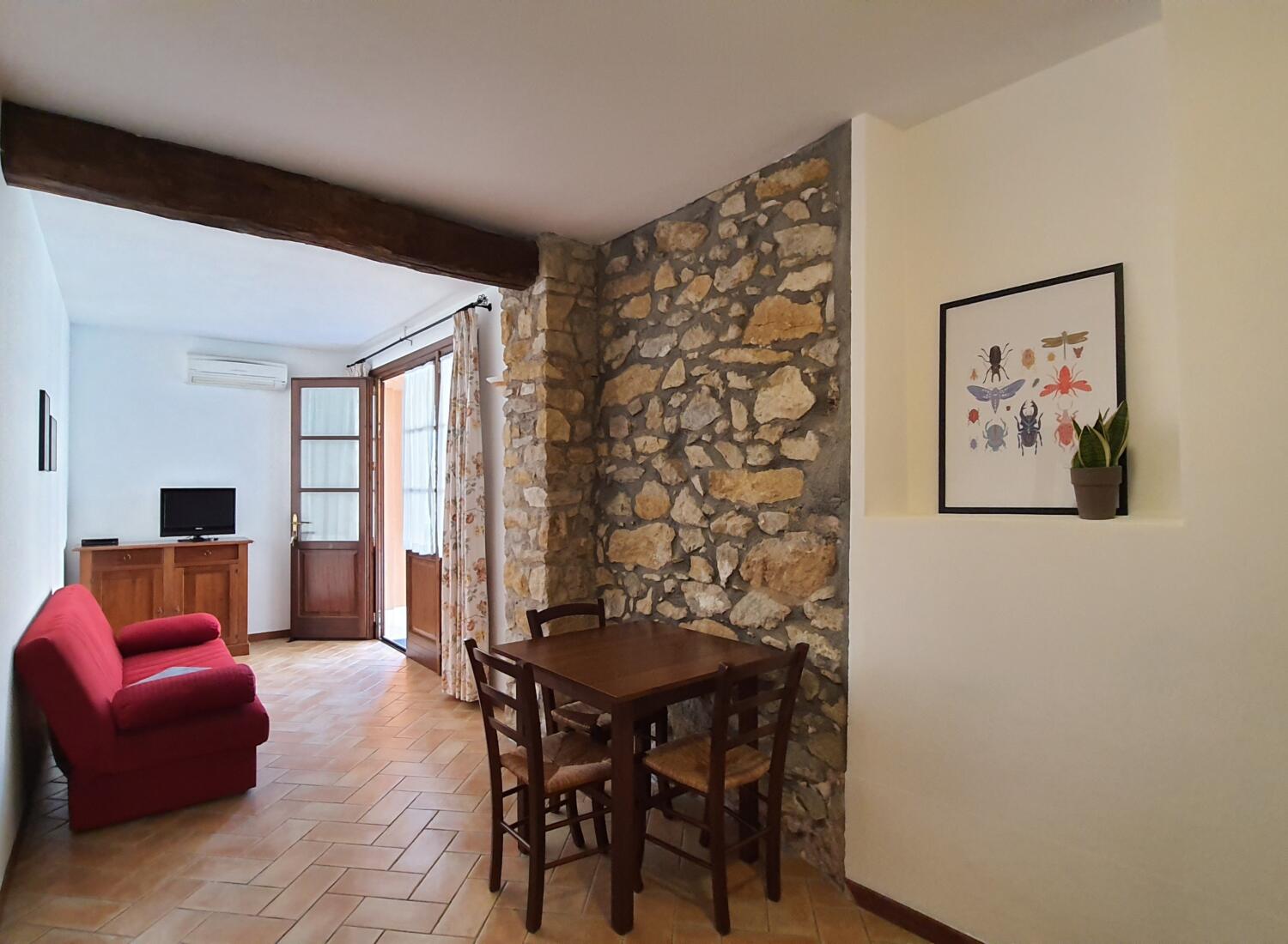 Die Wohnung befindet sich im ersten Stock und hat einen Teil der Terrasse zum Innenhof mit weitem Blick in den Park. Sonnenliegen, Tisch, Stühle und Sonnenschirm sind vorhanden. Es besteht aus einem Wohnzimmer mit ausgestatteter Küche und Doppelbett, großem Badezimmer mit Dusche.