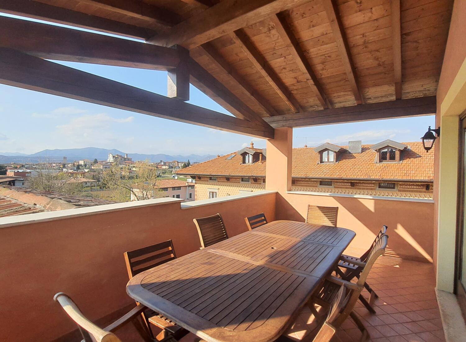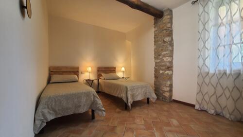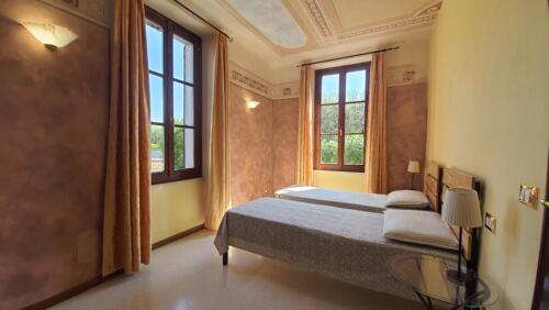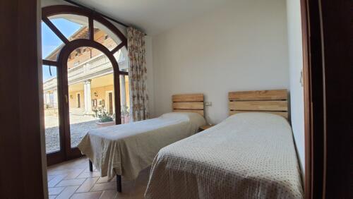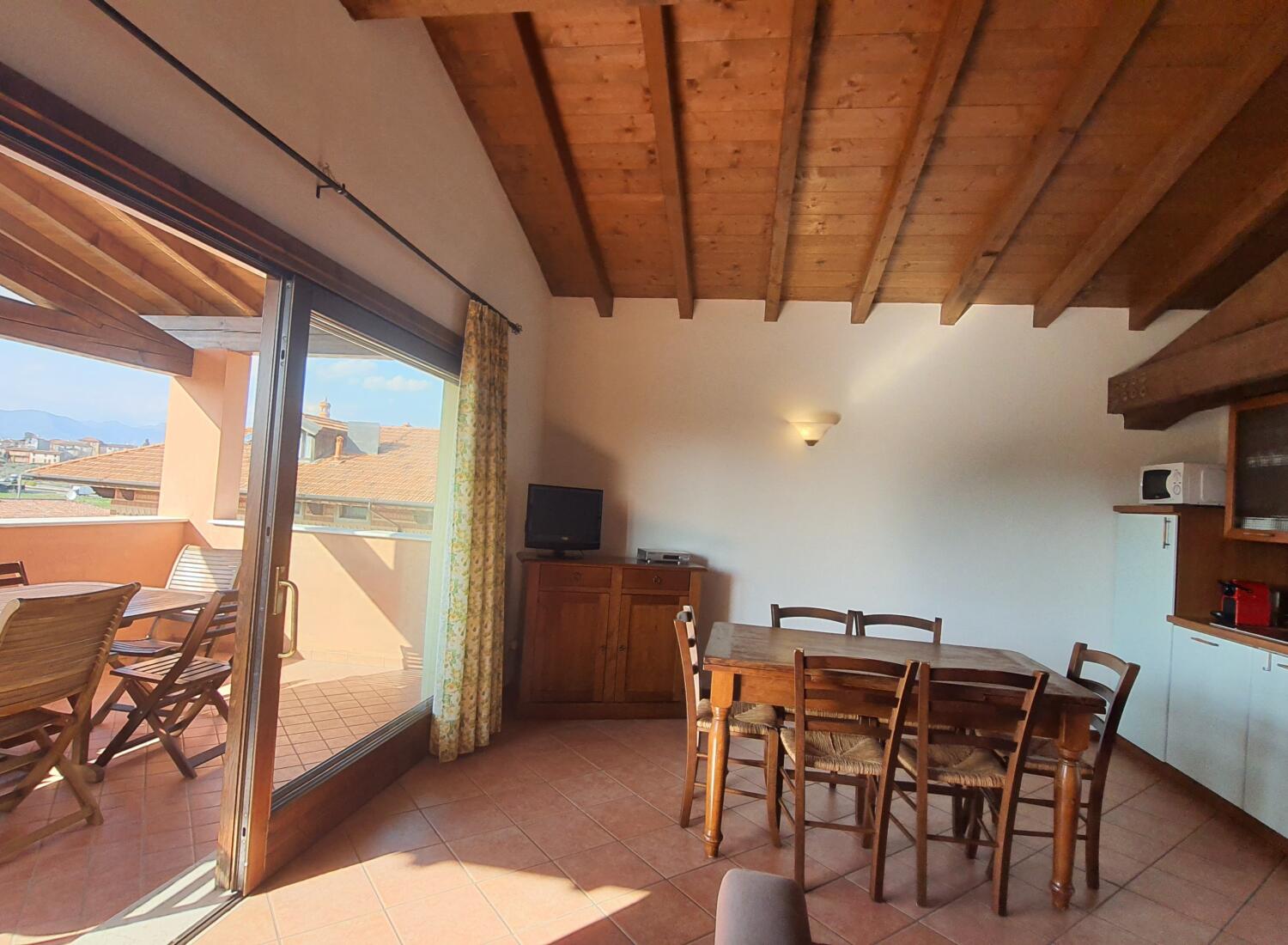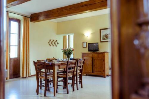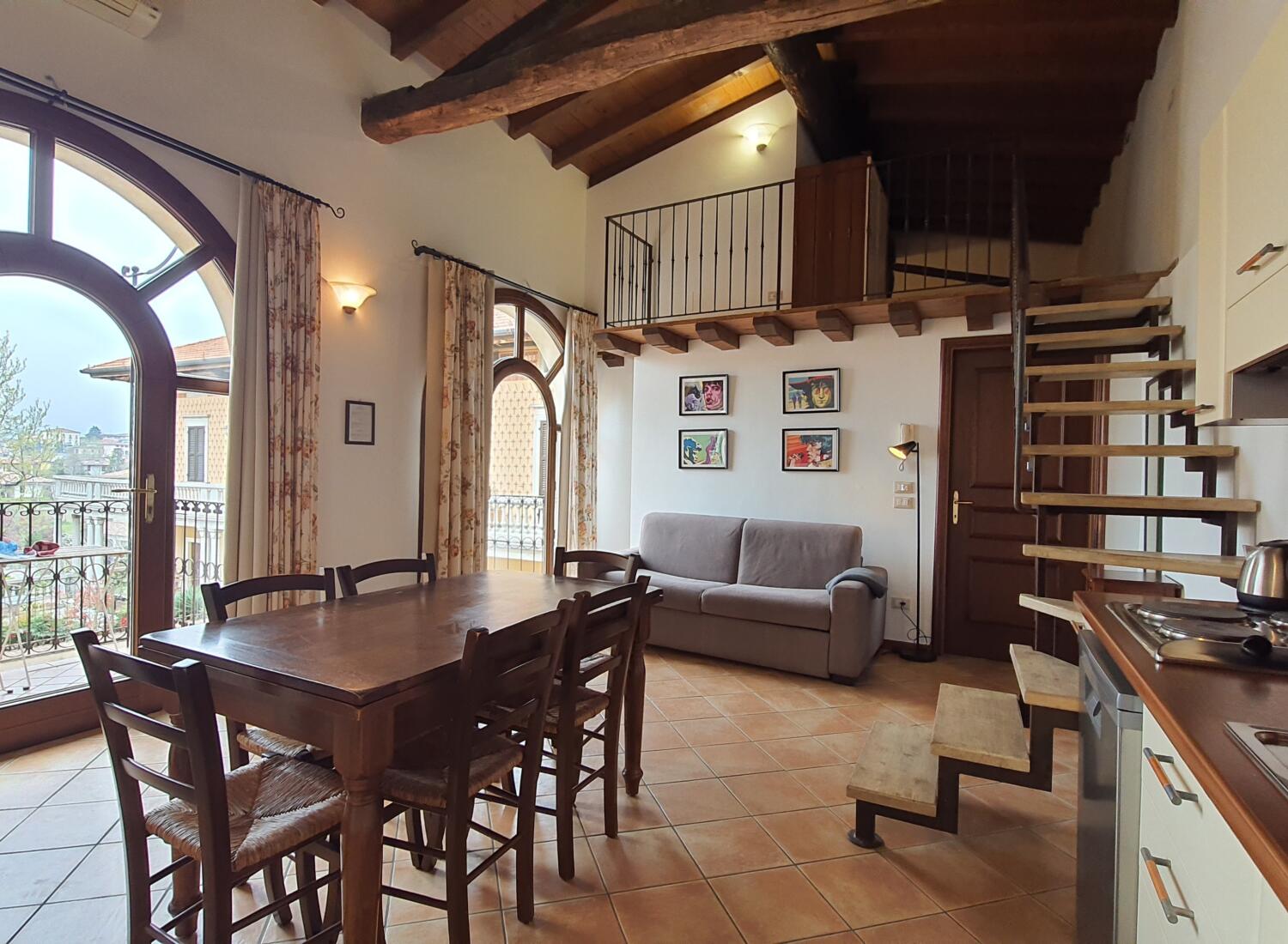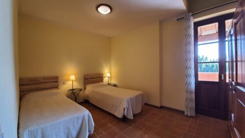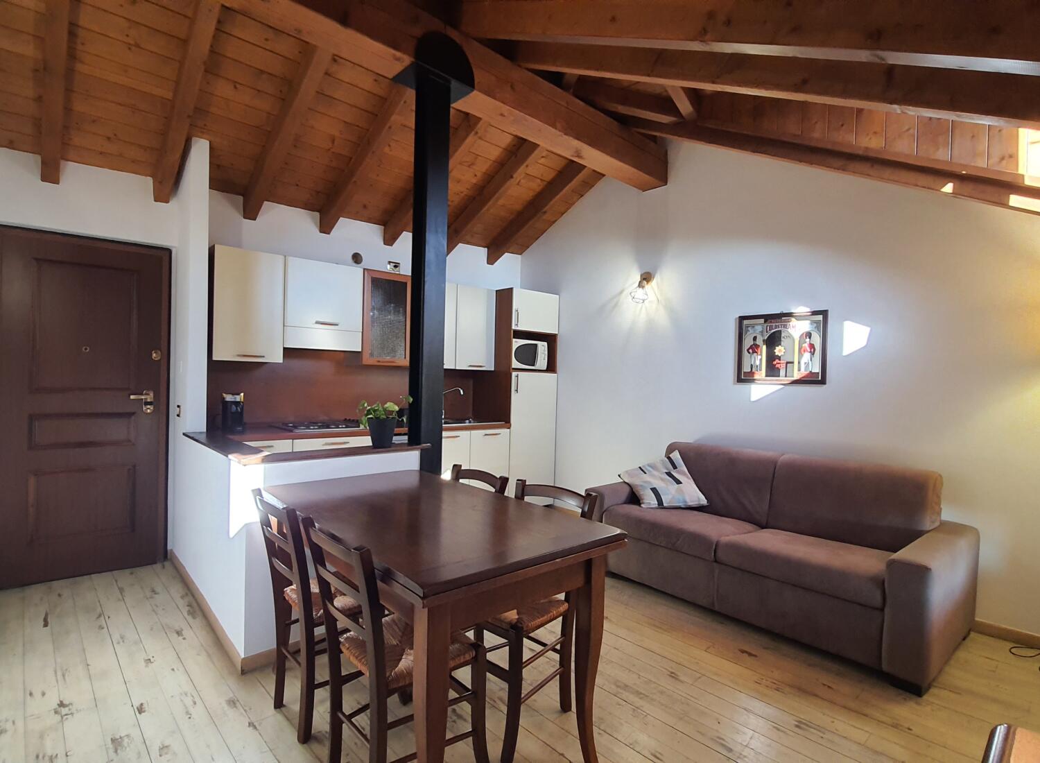 Die Wohnung befindet sich im ersten Stock und hat einen Teil der Terrasse zum Innenhof mit weitem Blick in den Park. Sonnenliegen, Tisch, Stühle und Sonnenschirm sind vorhanden. Es besteht aus einem Wohnzimmer mit ausgestatteter Küche und Doppelbett, großem Badezimmer mit Dusche.